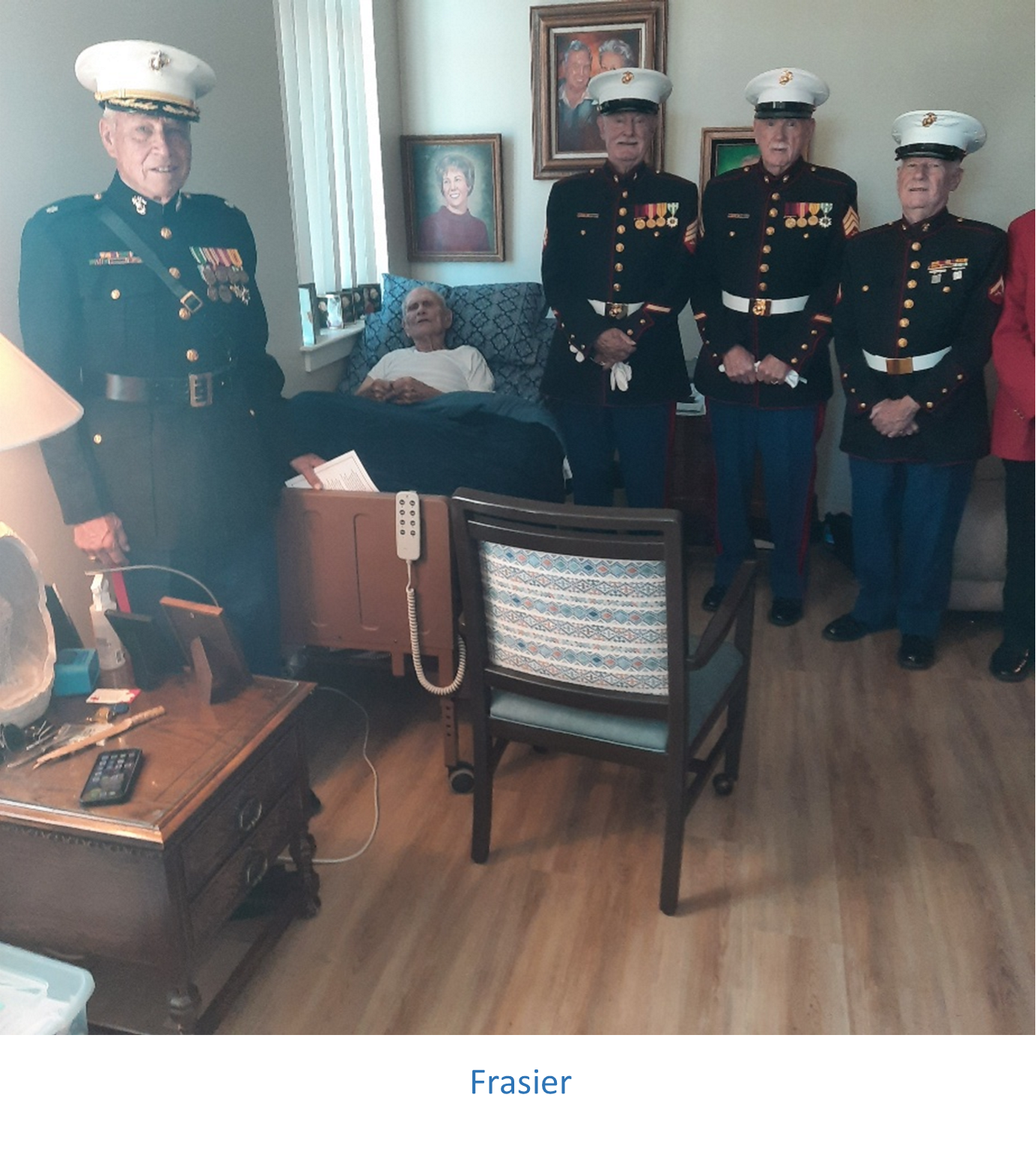 Lt Col Bob Wallace (AVHOF Class 2014) and other Marines visited Major Stewart Fraiser (AVHOF Class of 2018) to celebrate the 250th birthday of the Marine Corps and sing the Marines hymn.