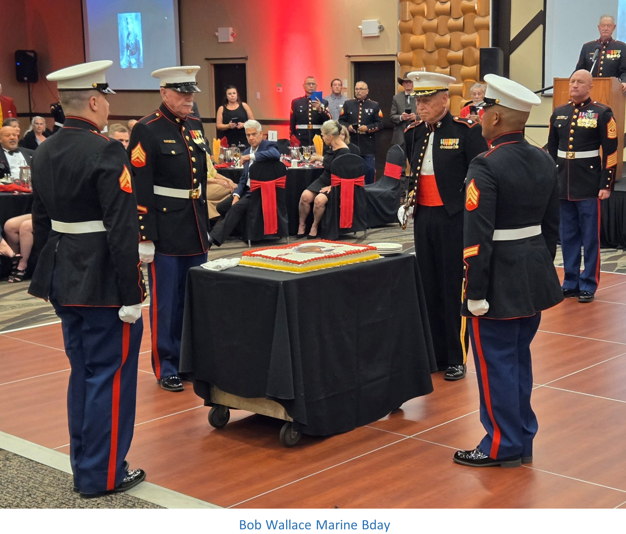 They say there is a first time for everything! 30 plus years in the Navy and a son who retired from the Marine Corps, my wife and I were invited guests of Lt Col Bob Wallace (Class of 2014) to the 250th Marine Corps Birthday Ball! True to form was outstanding, expect nothing less from the Marines. Also, Bob was part of the Cake cutting ceremony.
